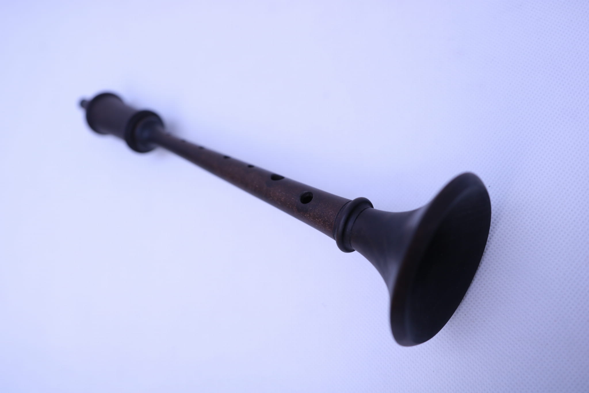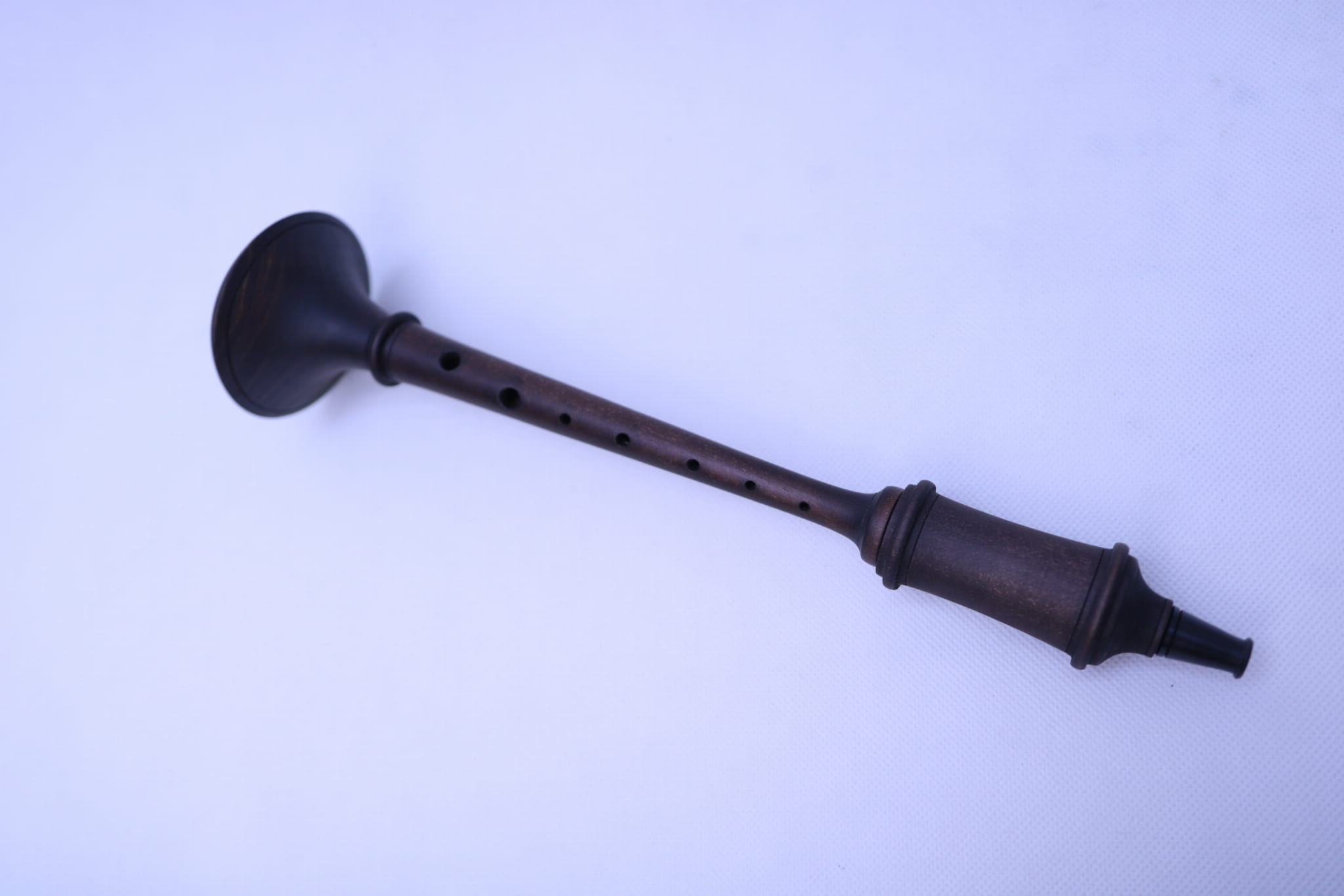 Drewniana szłamaja (Raushpfeife) z plastikowym stroikiem.